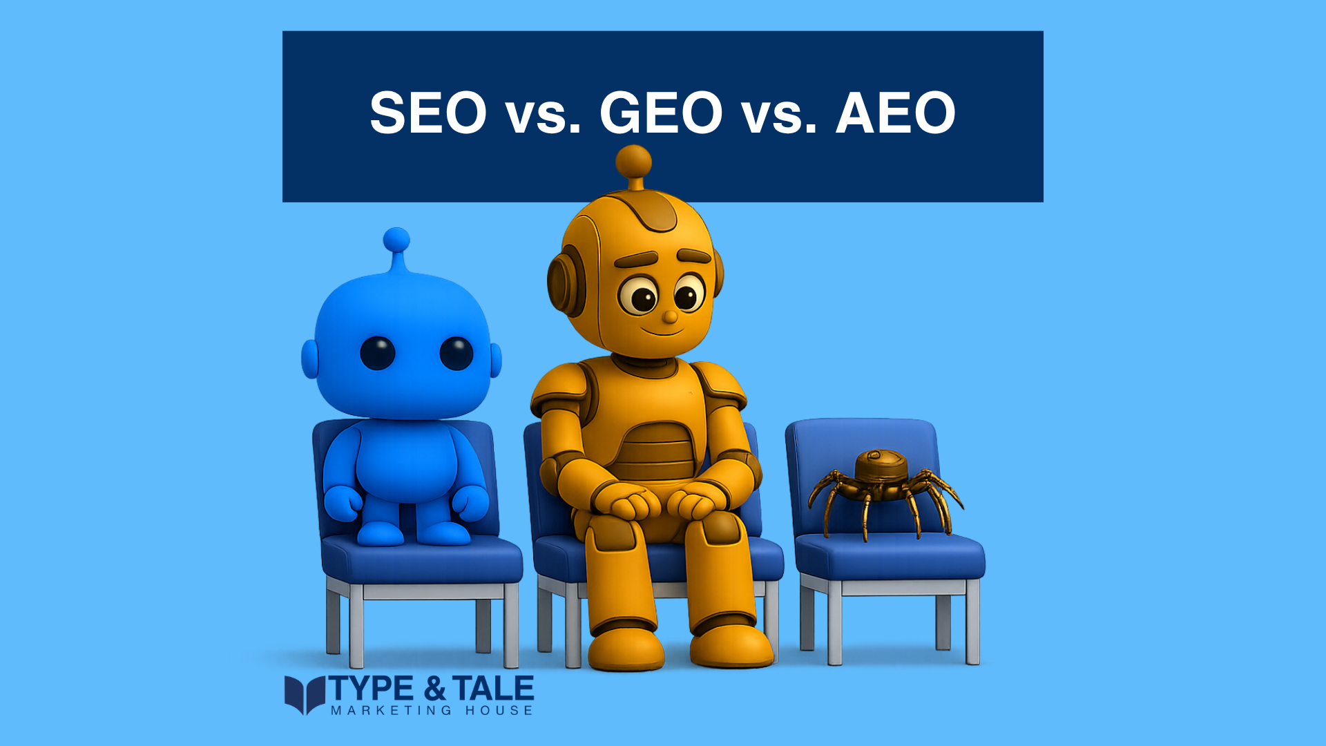 SEO focuses on ranking in traditional search results. GEO focuses on being cited inside AI-generated responses. AEO focuses on becoming the direct answer or recommendation in answer-driven interfaces. (Type and Tale)